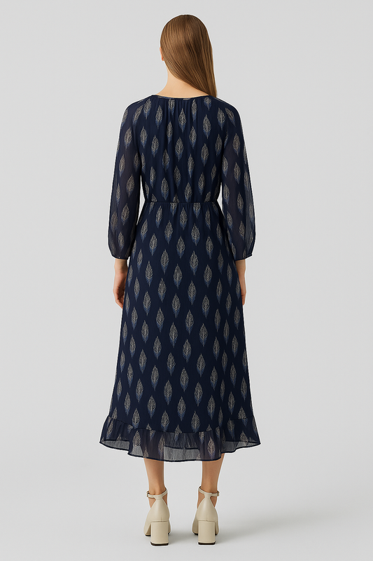 Boho-Print Midi-Kleid – Navy Eleganz